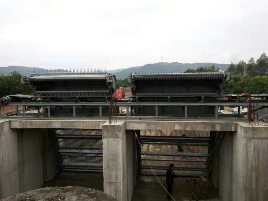 自貢高中壓閥門股份公司一大型水利項(xiàng)目安裝現(xiàn)場(chǎng),施工人員正在抓緊施工,從現(xiàn)場(chǎng)觀察:回轉(zhuǎn)式格柵清污皮帶輸送機(jī)安裝完畢,下一步調(diào)試運(yùn)行通水!