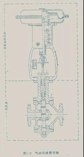 調(diào)節(jié)閥一般由執(zhí)行機構(gòu)和閥組件兩個部分組成。在有些場合可帶有閥門定位器、手輪機構(gòu)等附件。調(diào)節(jié)閥中最典型的產(chǎn)品——氣動雙座調(diào)節(jié)閥的結(jié)構(gòu)如圖1-3所示。