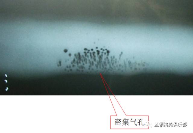 氣孔內(nèi)部充滿氣體,射線穿過氣孔幾乎不會形成材質(zhì)衰減。在射線底片上氣孔呈暗色斑點,中心黑度較大。單個氣孔邊緣較淺平滑過渡,輪廓規(guī)則較清晰,密集氣孔成團狀。氣孔大多是球形的,也可以有其它形狀,氣體的形狀與焊接條件密切有關(guān)。