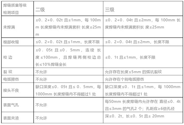 二級焊縫質(zhì)量等級及缺陷分級