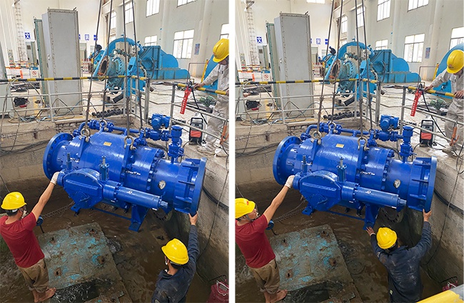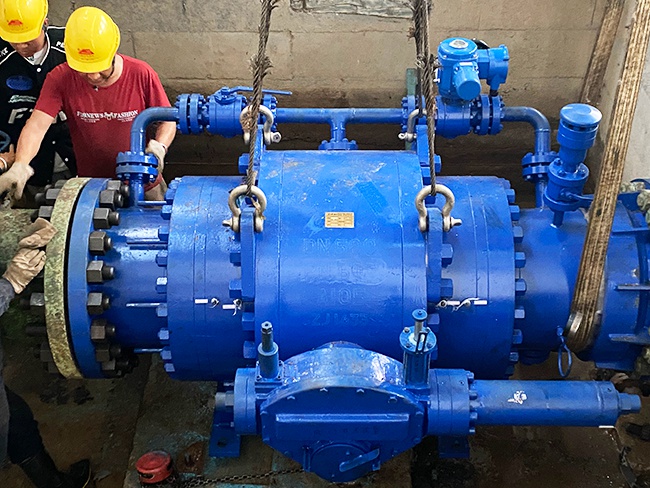 四川天閥公司派人實(shí)地勘驗(yàn)后,制定了初步技改方案。進(jìn)水球閥使用帶上下游密封環(huán)的水電專用球閥。2021年5月,天閥公司將制作完成的球閥運(yùn)送到電站現(xiàn)場,適逢電站豐水期,不利于停水安裝。2021年底,新冠病毒爆發(fā),地處云南邊陲的大寨河成為了疫情防控重點(diǎn)地區(qū),深能源與天閥公司與相關(guān)部門溝通,多方努力都未達(dá)成安裝時間共識。