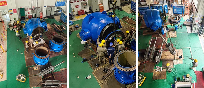 大唐金平國能公司2023年1月通過網(wǎng)上招標(biāo)評比,確定四川天閥閥門有限公司為中標(biāo)人。天閥公司立即組織公司技術(shù)人員分析項目內(nèi)容,該項目最大難處在于現(xiàn)場更換密封件。而業(yè)主方提供的圖紙沒有球閥密封件的相關(guān)尺寸!天閥公司總工程師陳總帶隊到現(xiàn)場對球閥外形測量,在沒有停水停機(jī)情況下,憑借豐富經(jīng)驗,推算出球閥前后密封件尺寸,并制圖后交給加工車間制作。最終在合同約定時間圓滿完成現(xiàn)場更換并全部調(diào)試合格,受到了大唐金平國能公司的一致贊賞!